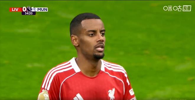 第34分钟,利物浦后场由科纳特送出直塞打穿曼联防线,伊萨克绝佳的单刀机会,结果被拉门斯用腿挡出。