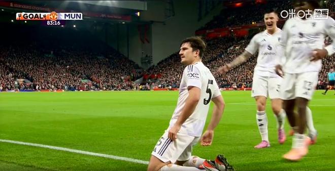 第84分钟,曼城前场左侧B费开出角球,姆伯莫打门被挡出,B费直接将球端到禁区,马奎尔头球破门,曼联再次领先。