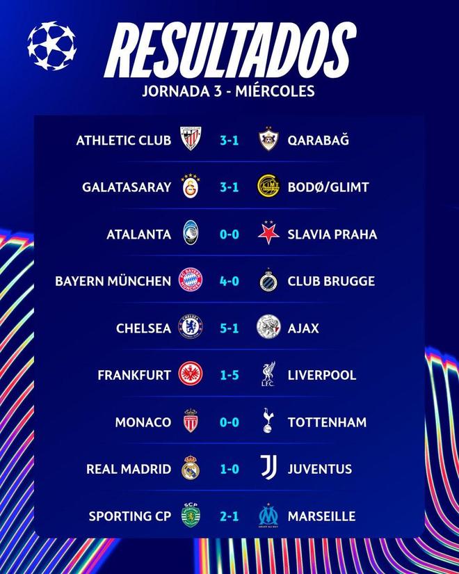 本赛季欧冠联赛阶段前三轮比赛战罢,还有五支球队保持全胜,分别是巴黎圣日耳曼、拜仁慕尼黑、国际米兰、阿森纳和皇家马德里。